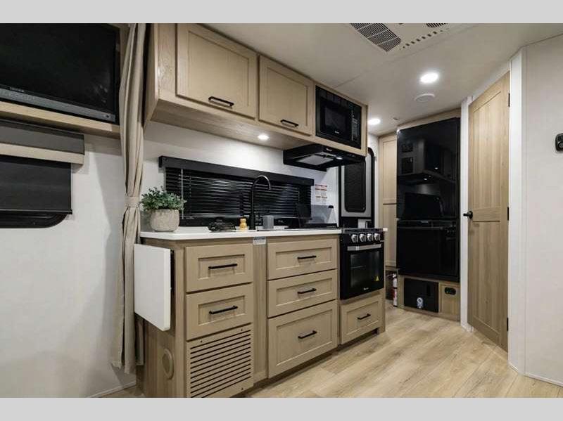 Sleeps 2 Slides 2 Length 25 ft 10 in Ext Width 8 ft Ext Height 10 ft 11 in Hitch Weight 710 lbs Dry Weight 6313 lbs Cargo Capacity 1397 lbs Fresh Water Capacity 54 gals Grey Water Capacity 58 gals Black Water Capacity 29 gals Furnace BTU 35000 btu Available Beds Queen Refrigerator Type 12V Cooktop Burners 3 Number of Awnings 1 LP Tank Capacity 30 lbs Water Heater Capacity 6 gal Water Heater Type Gas/Electric with Quick Recovery AC BTU 15000 btu TV Info LR 12V Smart Entertainment TV Awning Info 15' Power with Adjustable Rain Dump and LED Lights Axle Count 2 Number of LP Tanks 2 Shower Type Standard Similar Floorplans