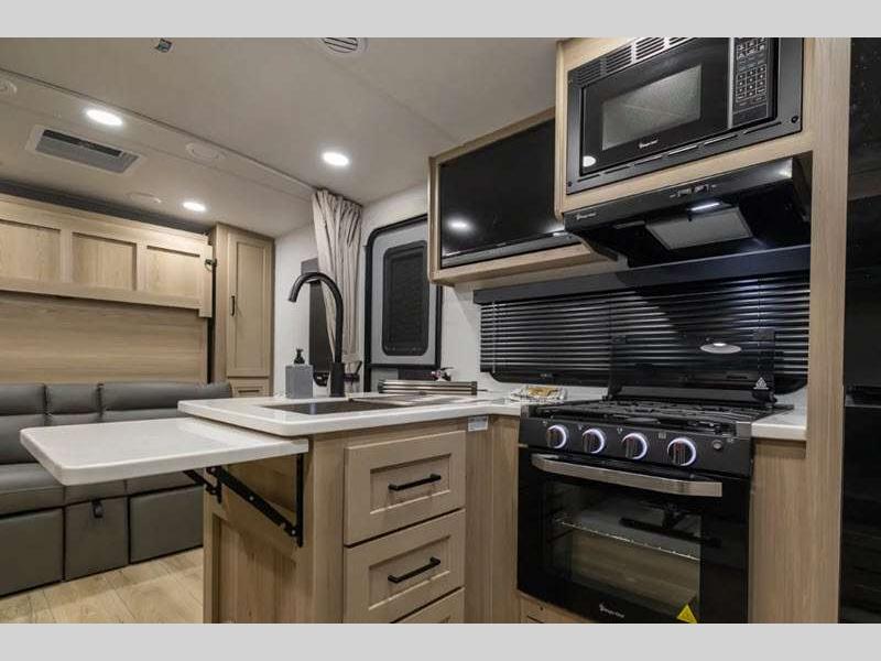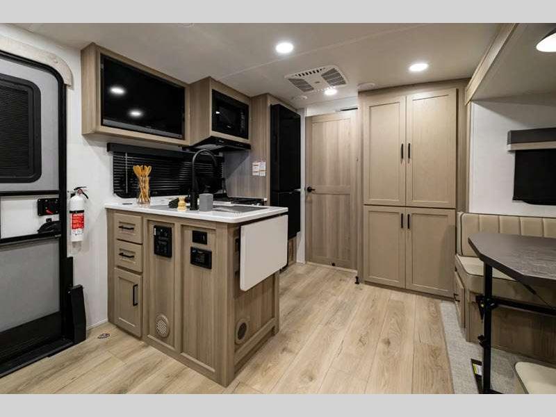 Sleeps 3 Slides 1 Length 22 ft 4 in Ext Width 8 ft Ext Height 10 ft 3 in Hitch Weight 557 lbs Dry Weight 4493 lbs Cargo Capacity 1344 lbs Fresh Water Capacity 54 gals Grey Water Capacity 29 gals Black Water Capacity 29 gals Furnace BTU 20000 btu Available Beds RV Queen Refrigerator Type 12V Cooktop Burners 3 Number of Awnings 1 LP Tank Capacity 30 lbs Water Heater Type Gas/Electric with Quick Recovery AC BTU 15000 btu TV Info LR 12V Smart Entertainment TV Awning Info 14' Power with Adjustable Rain Dump and LED Lights Axle Count 2 Number of LP Tanks 2 Shower Type Radius Similar Floorplans