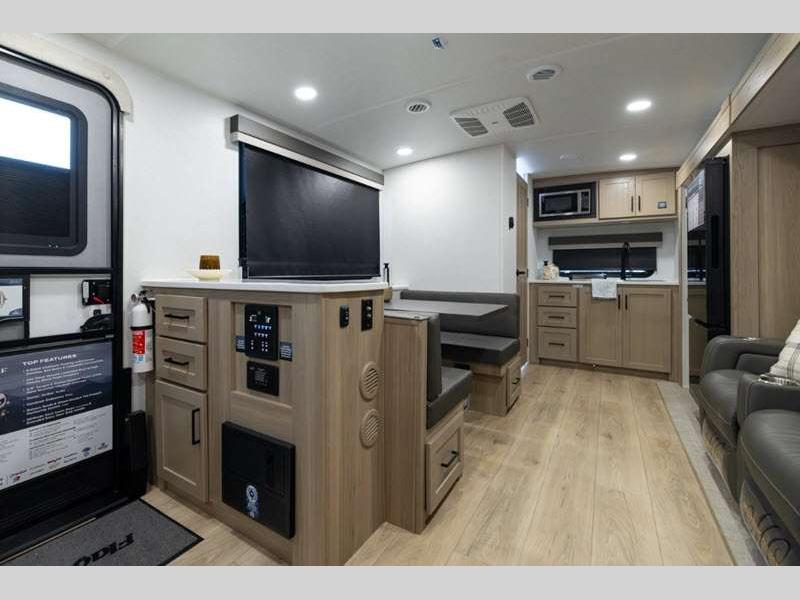 Sleeps 2 Slides 1 Length 23 ft 10 in Ext Width 8 ft Ext Height 10 ft 11 in Hitch Weight 634 lbs Dry Weight 5132 lbs Cargo Capacity 1662 lbs Fresh Water Capacity 54 gals Grey Water Capacity 30 gals Black Water Capacity 30 gals Furnace BTU 35000 btu Available Beds RV Queen Refrigerator Type 12V Cooktop Burners 3 Number of Awnings 1 LP Tank Capacity 30 lbs Water Heater Capacity 6 gal Water Heater Type Gas/Electric with Quick Recovery AC BTU 15000 btu TV Info LR 12V Smart Entertainment TV Awning Info 18' Power with Adjustable Rain Dump and LED Lights Axle Count 2 Number of LP Tanks 2 Shower Type Radius Similar Floorplans